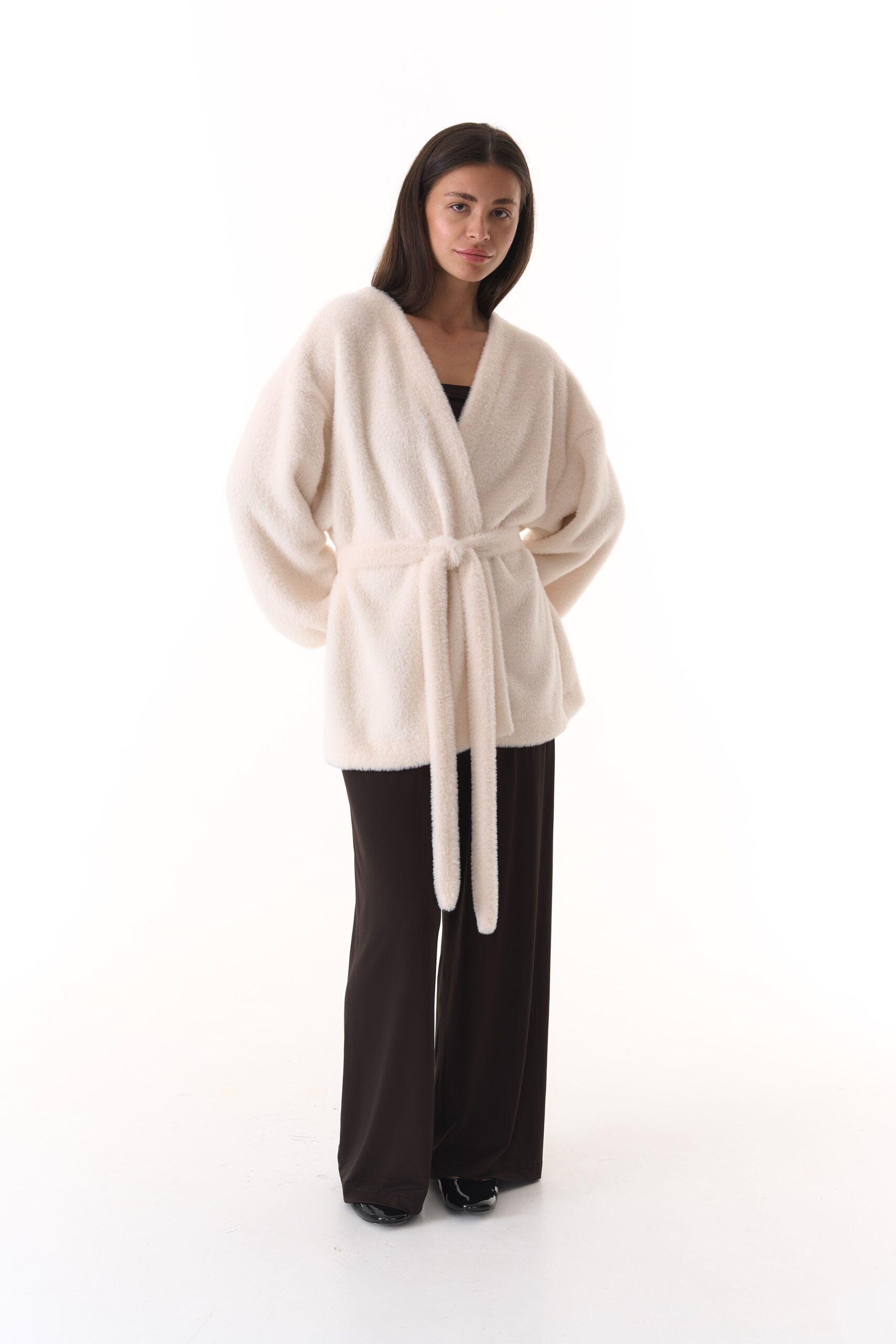 Неймовірно м’який та стильний кардиган зі штучної альпаки. Завдяки особливому складу матеріалу кардиган приємний до тіла, тримає форму та ідеально підходить для створення як базових так і романтичних образів.